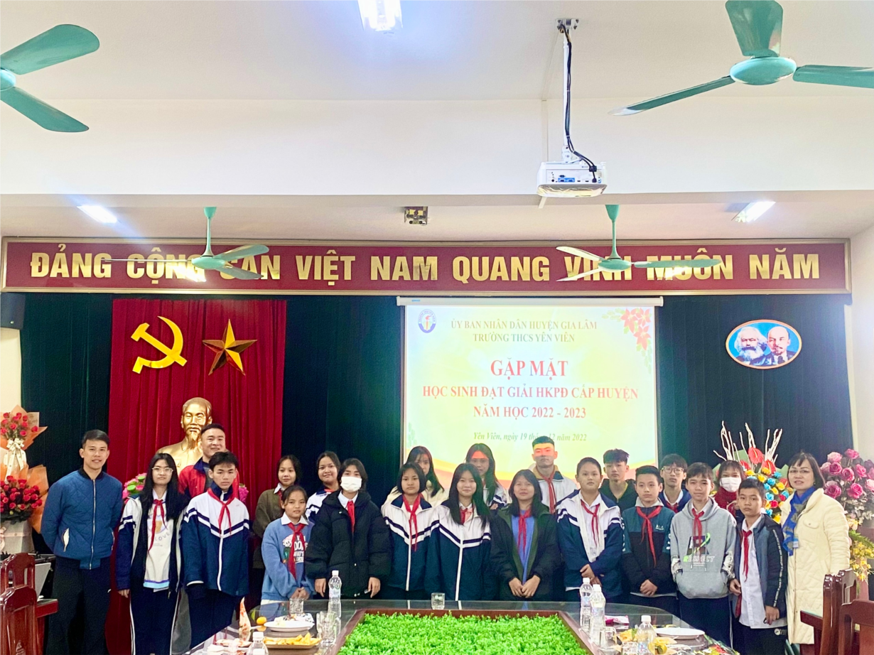 Sáng ngày 19/12/2022, Ban giám hiệu cùng các thầy cô GVCN, các thầy giáo phụ trách môn GDTC nhà trường tổ chức gặp mặt và động viên 19 học sinh đạt giải Hội khỏe Phù Đổng cấp Huyện tại phòng HĐSP nhà trường (gồm 05 giả nhất, 07 giải nhì, 07 giải ba).