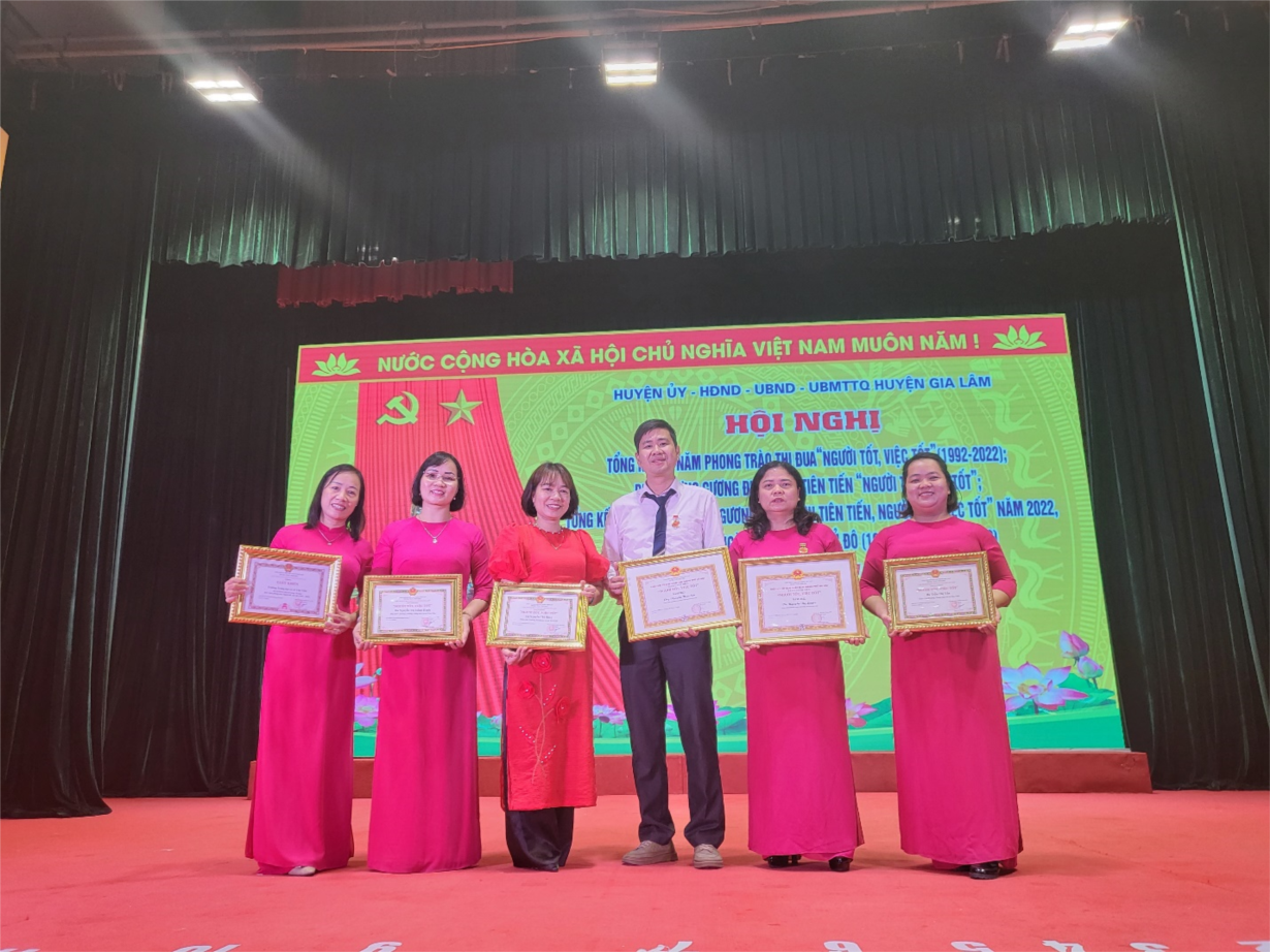 Các thầy cô giáo nhà trường được nhận danh hiệu Người tốt việc tốt cấp Huyện, Thành phố năm 2022.