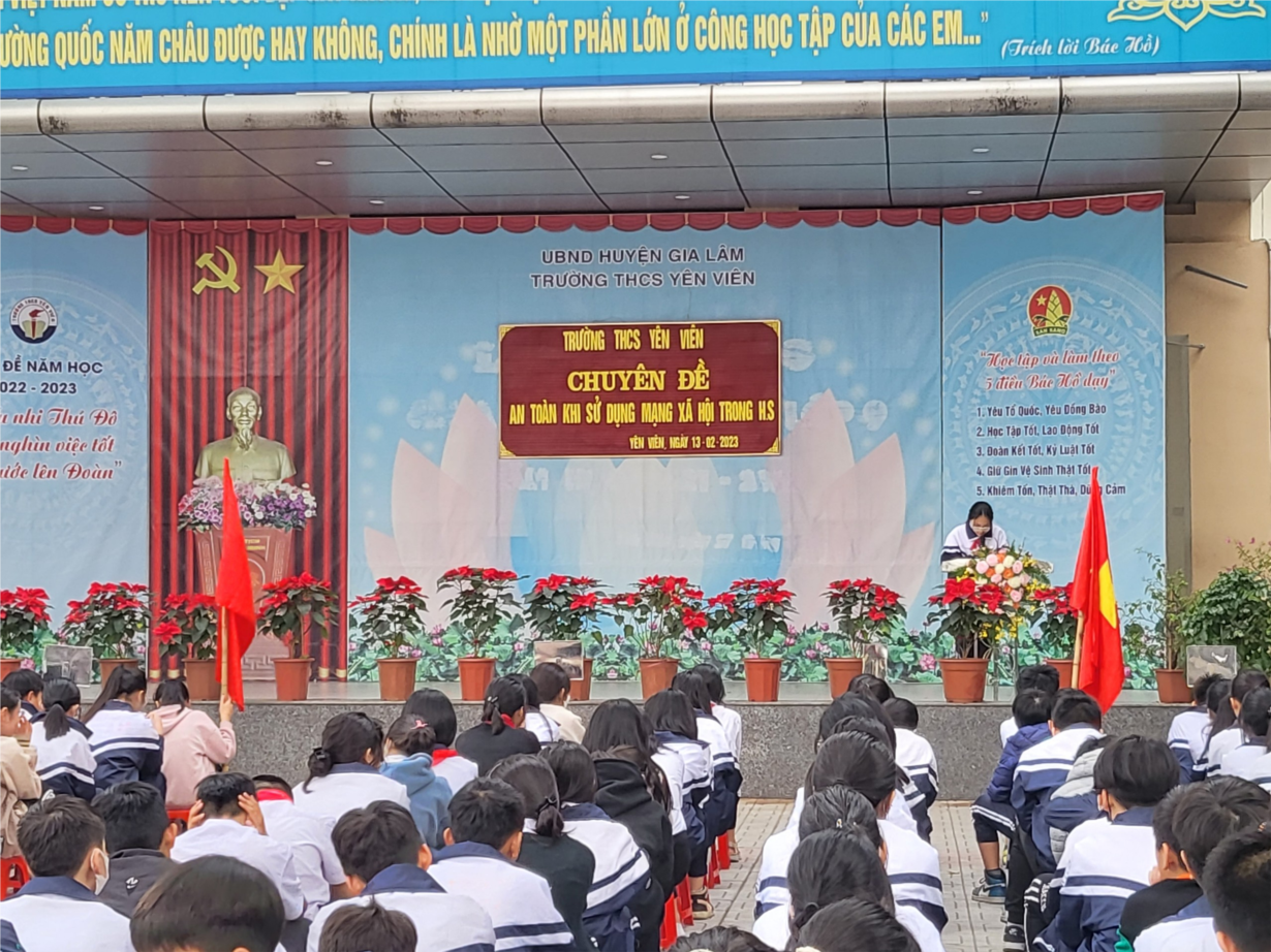 Để giúp các em học sinh nhận thức được những mặt tiêu cực và có cách sử dụng mạng xã hội an toàn, hiệu quả. Sáng thứ 2 ngày 13/02/2023 Liên đội trường THCS Yên Viên tổ chức chuyên đề về cách sử dụng mạng xã hội an toàn vào giờ sinh hoạt đầu tuần. Về phía nhà trường đại diện Ban tổ chức có cô giáo tổng phụ trách Trần Thị Yến tham luận với nội dung mặt tích cực và tiêu cực khi sử dụng mạng, tiếp theo sau đó là các bài tham luận trong học sinh đại diện khối 9 em Nguyễn Hoàng Anh, khối 6 em Ngô Thị Tuyết.