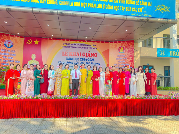 Cô Hồng Hạnh cùng đồng nghiệp trong Lễ Khai giảng năm học 2024-2025